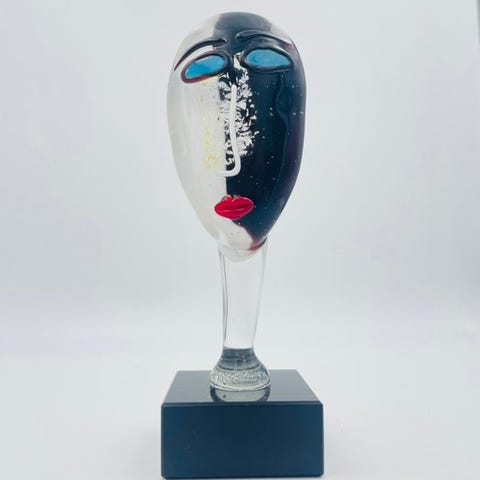 Midterbordet er i god stand, altid brugt som pynteting, har kun en ridse på bunden, men den er usynlig ved inspektion af genstanden. Det er signeret af designeren på bunden, som alle kunstnere, der samarbejder med de store Murano-producenter, gør. Det er omgivet af en gulddekoration på kanten. Glasset er matet.