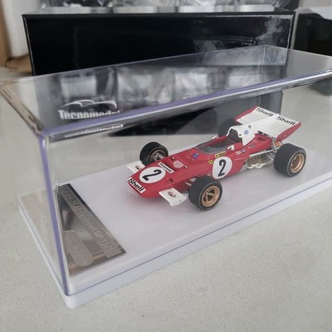 Meget eksklusiv skala model af Ferrari 801 Formel 1, udført i konfigurationen af Frankrigs Grand Prix 1957, startnummer 12, kørt af Peter Collins. Dette højkvalitets model er produceret af Tecnomodel inden for Mythos Series og er begrænset til kun 110 eksemplarer på verdensplan.