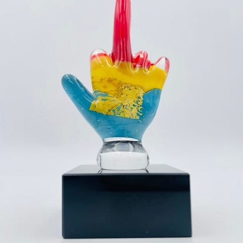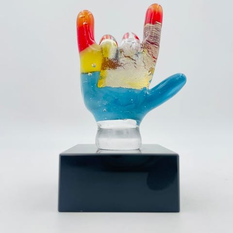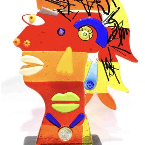 Satinato glasbase for at gengive is-effekten og med kunstnerens signatur.