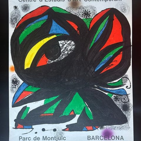 Plakaten blev produceret i 2021, efter Mirós levetid, som en del af en retrospektiv udstilling, der fremhævede den kreative dialog mellem Miró og Jorn — to kunstnere, der delte en passion for at bryde traditionelle regler og udforske frihed i kunsten.
