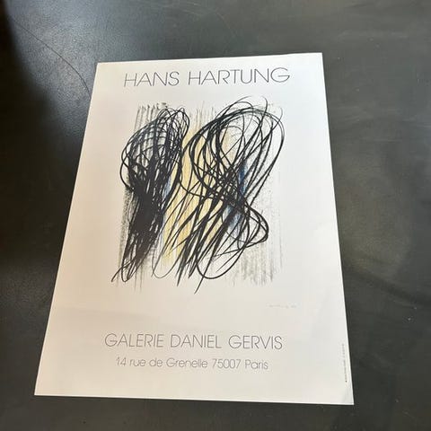 Udstillingsplakat i fuld farve med offsetlitografi og en reproduktion af et Beuys-værk (Brev om musikken) fra 1963.