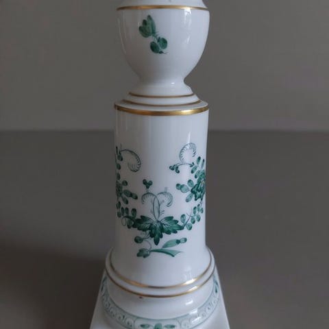 Det bærer ingen branding. Dog indikerer de blå fiskeskala-mønstre, at dette objekt sandsynligvis er fra Meissen. Desuden, da der ikke er nogen menneskefigur på det, er det sandsynligt, at det er produceret til det islamiske marked. Der er ingen stempel på det, men det ligner meget perioden for Marcolini, som sendte mange produkter til det islamiske marked mellem 1774 og 1814.
