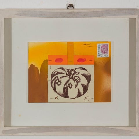 Originalt, unikt værk af Concetto Pozzati (1935–2017) fra serien Ristoria prioritaria fra 2004, udført i teknikken blandet med collage, 13 × 18 cm, i fremragende stand, solgt med sin originale ramme (samlet størrelse 27,5 × 32,5 cm), håndsigneret og med autentifikation fra Archivio Concetto Pozzati. Klik på den blå "gå til varen" knap, for at købe eller byde på denne vare. Den samlede pris vil blive vist inden du afgiver dit bud.