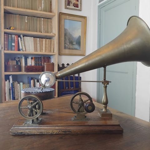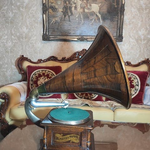 Leeds Mellophone grammofon, i meget god fysisk beholdning og testet og i drift, vejer 23 kg og inkluderer et ekstra objekt som beskrevet. Klik på den blå "gå til varen" knap, for at købe eller byde på denne vare. Den samlede pris vil blive vist inden du afgiver dit bud.