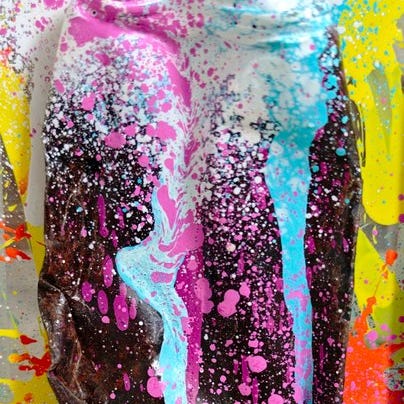 Han laver sine billeder ud fra collager af revne plakater, graffiti, maling og