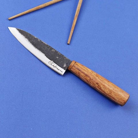 Højcarbon- eller rustfrit stålblad, fremragende til skarphed og kantbevarelse.