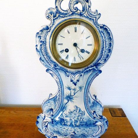 En 1800-tals Mougin boulle pendulururururklokke med træskal, skildpaddeskindslignende finer og bronzeornamenter, mekanisk urværk med 8-dages gangreserve, 30 cm høj, 16 cm bred, 11 cm dyb, 4 kg, nøgle medfølger, i god brugt stand og i funktion med halvtime slag. Klik på den blå "gå til varen" knap, for at købe eller byde på denne vare. Den samlede pris vil blive vist inden du afgiver dit bud.
