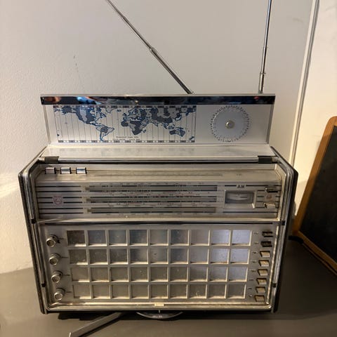 Har ikke fungeret i flere år, de indendørs lamper er støvede, men radioen tændte under den nylige test. Jeg kan ikke garantere dens funktion.