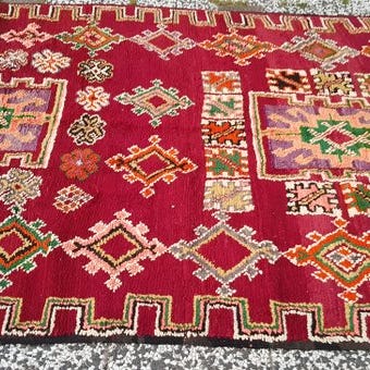 Hvem ender med at vinde dette antikke marokkanske tæppe, køber ikke kun et smukt tæppe, men også og især et ekstraordinært og unikt stykke af lokalt håndværk, da det er vævet i hånden af berberkvinder.