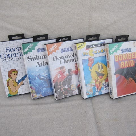 Sega Master System 8-spils Lot, i originalemballage, i meget god stand og alle i funktion, herunder Renegade, Altered Beast, Donald Duck: The Lucky Dime Caper, Wonder Boy, Dragon Crystal, Parlour Games, Choplifter og Enduro Racer. Klik på den blå "gå til varen" knap, for at købe eller byde på denne vare. Den samlede pris vil blive vist inden du afgiver dit bud.