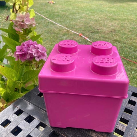 Rød kasse til Lego, der har originalt været Lego junior i.