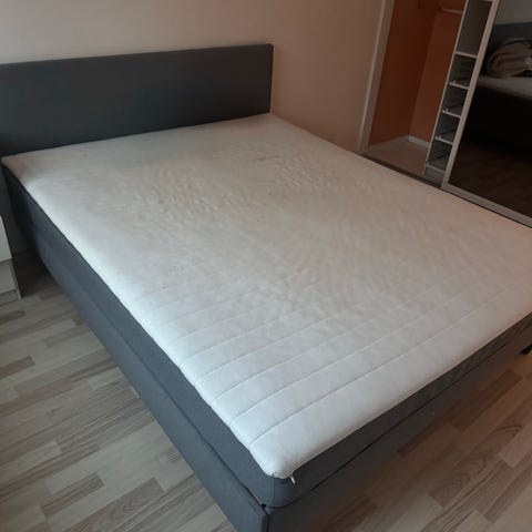 IKEA SÄBÖVIK Kontinentalseng, fast/Vissle grå, 160x200 cm. Fremstår i afsindigt god stand, og udelukkende benyttet med topmadras, rullemadras såvel som vandafvisende lagen. Nypris 3.300 kr.: