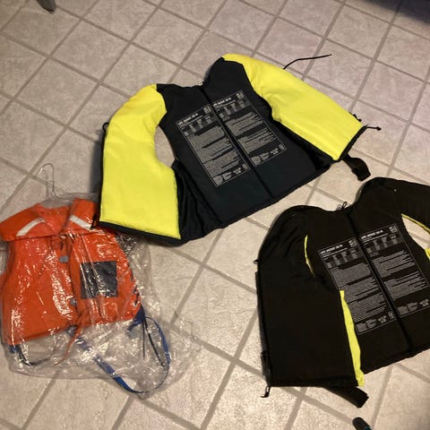 Vestens farve er grøn med sorte detaljer. Den er designet til at give opdrift og sikkerhed ved vandsport og aktiviteter.