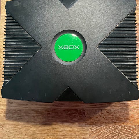Microsoft Xbox Original spilkonsol med gennemsigtigt kabinet. Inkluderer to controllere og 6 spil: Halo, Tom Clancy's Ghost Recon, Forza Motorsport, Far Cry, Medal of honour og Call of Duty. Konsollen er designet til hjemmeunderholdning og kompatibel med Xbox-spil.