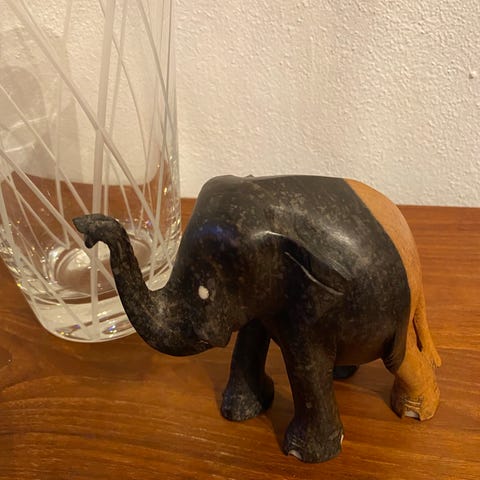 Elefant dekoration på trææske (str. Ø 7,5x10 cm)