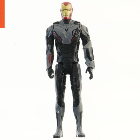 Actionfigur fra Avengers i sort og sølvdragt. Figuren har detaljerede træk, med et futuristisk design og en størrelse på 29,5 cm.