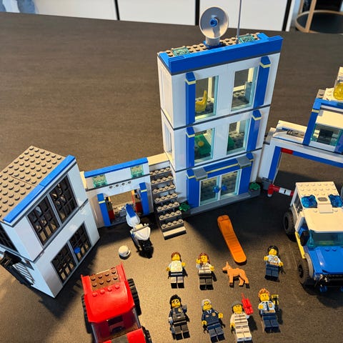 Der mangler et klistermærke til røverbilen. Batterier trænger til at bliver skiftet (lyser meget svagt). Bygninger er 99% de rigtige klodser - figurer er ikke helt rigtige - der er kommet et andet hovede på nogle af dem.