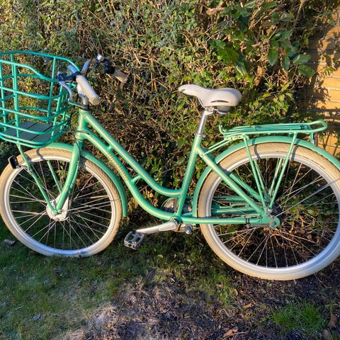 Mustang børnecykel i rød farve med kurv foran og bagagebærer bagpå. Cyklen har en lav indstigning, hvilket gør den velegnet til børn. Udstyret med skærme og kædeskærm for bedre beskyttelse under kørsel.