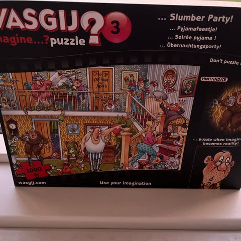 Wasgij? 2 Stop the Clock er et puslespil med 1000 brikker. Puslespillet udfordrer brugeren til at samle et billede baseret på, hvad der sker næste i scenen, snarere end det billede, der vises på æsken.