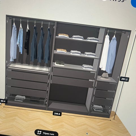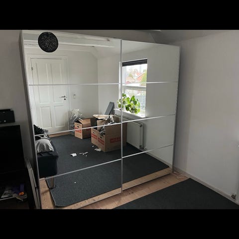 Ikea pax skab, har haft det i et år. Der er nogle ridser fra kat på den midterste skuffe, vist på billede.