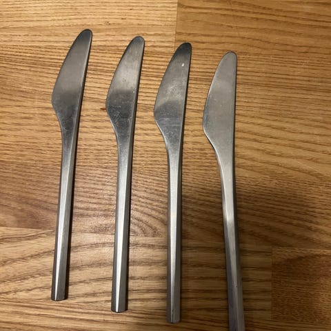 Georg Jensen knivsæt bestående af en kniv og en gaffel. Sættet leveres i original æske. Designet til køkkenbrug.