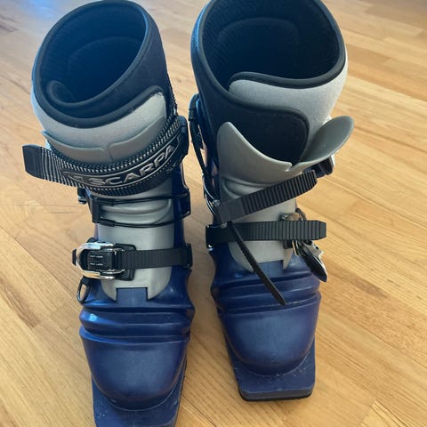 Skarpa telemark plastik-skistøvler (str 45 smal) med Vibram-såler.