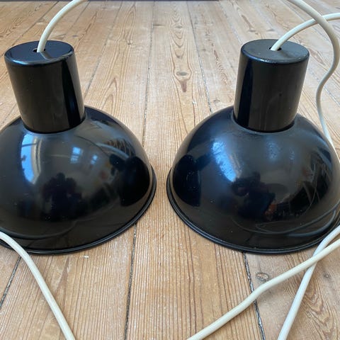 Bunker pendel maxi, er spraymalet sort med sort stofledning. Har lidt små ridser i toppen af lampen. Ø45