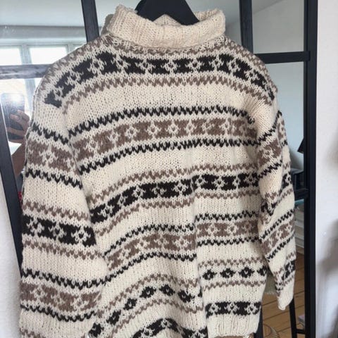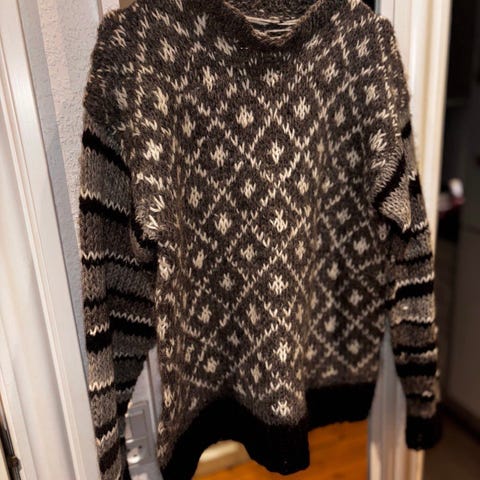 Hjemmestrikket sweater i flot mønster. Strikket i færøsk uld.