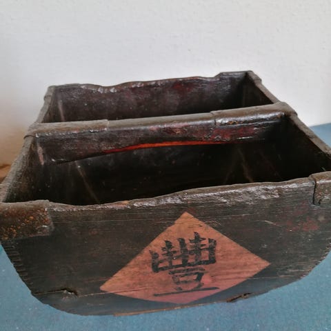 Kinesisk antik opbevaringsæske h 30 cm ( greb undtaget) d 31 cm i meget fin stand 450 kr