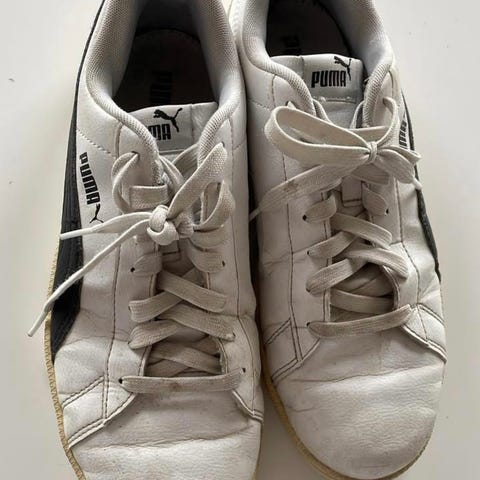 Disse sko er et par børnesko fra mærket Puma. De er primært lyserøde og har både snørebånd og velcrolukning for nem på- og aftagning. Bunden er hvid med mønster for godt greb på underlaget. De har Puma logoet tydeligt på bagsiden. Størrelse på skoene er 24.