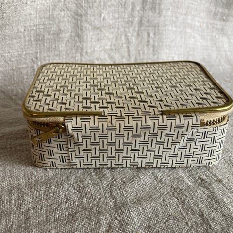 Sammenklappelig rejsekrus i læderetui (str. Ø. 5 cm. længde. 4,5)
