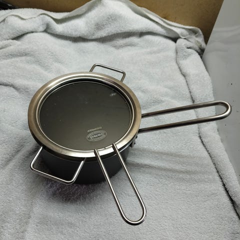 Eva Trio Sauterpande med kuppellåg 24 i diameter. Kuppellåget gør at der kan lavet en hel kylling i gryden. Pande og låg er passet, men med lidt brugsmærker. Nypris: 950