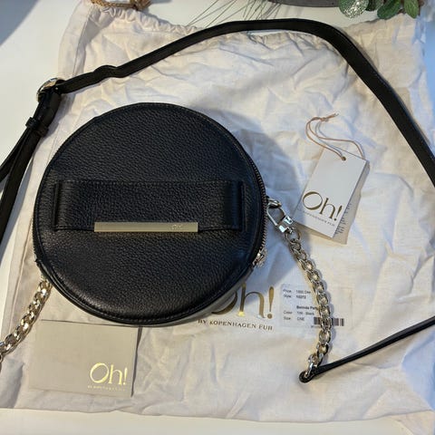 Denne lille taske er designet med et rundt form og har en længde på 18,5 cm. Den er lavet af et sort materiale med farverige mønstre, der inkluderer stjerner og blomster i forskellige farver som grøn, blå, og orange. Tasken har en lang rem, som kan bæres over skulderen, hvilket gør den til en praktisk crossbody taske. På fronten har den en lille lynlåslomme, som er ideel til opbevaring af mindre genstande.