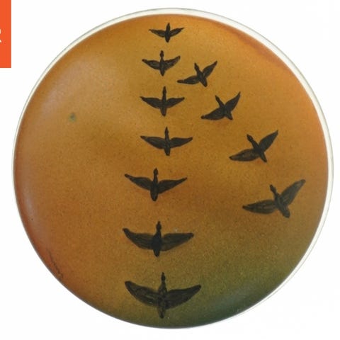 Keramik figur med låg af fuglemotiv (str. 13 cm)