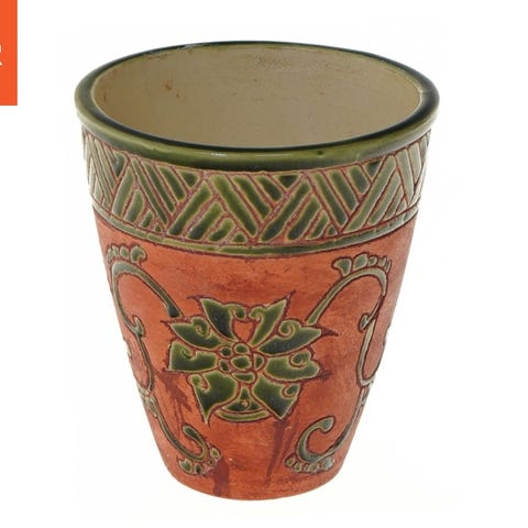 Denne vase fra Kriton har en rektangulær form med en størrelse på 13x14 cm. Den har en mørk brun farve og en tekstureret overflade med et netmønster. Vasen er glaseret indvendig, hvilket gør den ideel til dekorative formål eller til at holde små planter. Den har beskyttende pads på bunden for at forhindre skader på overflader.