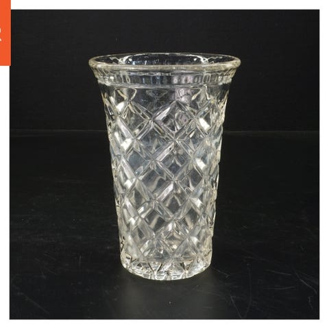 En smuk krystalvase med et indviklet skåret mønster, der strækker sig over dens overflade. Vasen har en klar, gennemsigtig finish, hvilket giver den et elegant og klassisk udseende. Den måler 21 cm i højden og har en bølget kantdesign med geometriske og blomsterlignende motiver på ydersiden. Perfekt til at tilføje et strejf af elegance til ethvert rum.
