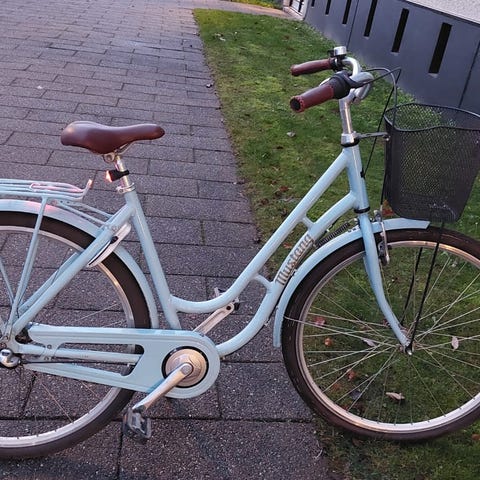 Super fin rød damecykel 28 tommer hjulstørrelsen i meget god stand. Med cykelkurv, cykellygte og cykellås. Kørerklar