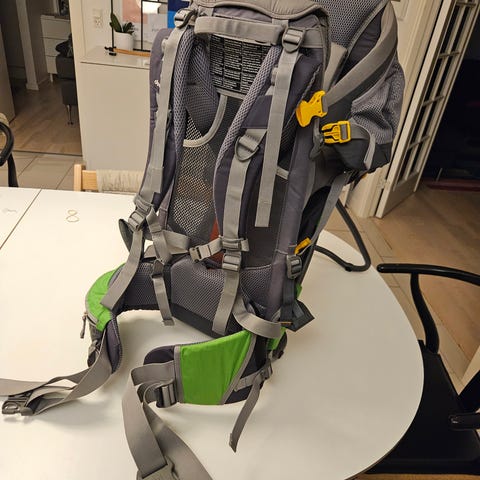 Deuter Kid Comfort rygsæk i blå farve. Designet til at bære børn med justerbare stropper og polstret rygpanel for komfort. Indeholder flere lommer til opbevaring og sikkerhedsseler for barnets sikkerhed. Velegnet til udendørs aktiviteter og vandreture.