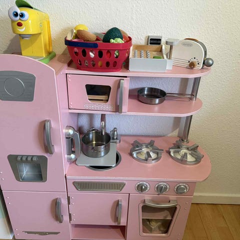 Denne smukke trækøkken er perfekt til alle små, der elsker at lege køkkenet.