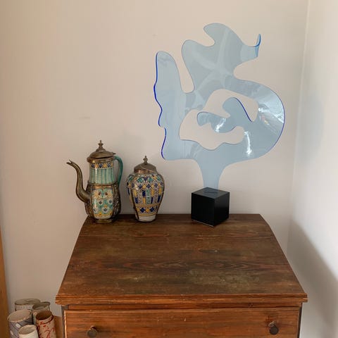 Skulptur i metalramme med net