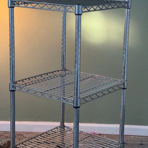 Lilla metal reol mål H 90 B 74 og D 34 cm