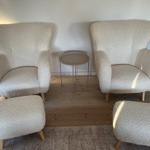 2 lænestole med fodskammel