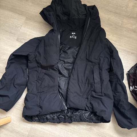 Uniqlo Vinterjakke i størrelse XS til herrer. Jakken er sort og lavet af polyester. Designet til udendørs brug i vinterforhold med funktionelle detaljer.
