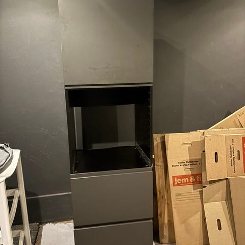 Metod højskabsstel med 4 hylder i fin stand. Skinne medfølger til evt ophæng.