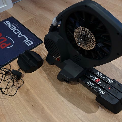 Hometrainer ELITE DIRETO X med 11 speed kasette. Kan kobles op med flere app mv. Jeg har brugt Garmin Edge 1030 hvorfra modstand kan reguleres (garmin følger ikke med) har ikke prøvet med andre app. Den er fra januar 2020 og den har kørt 2800 km. ifølge min Garmin. Cyklen på billede følger ikke med. NB viser ikke Watt og hastighed, modstand stilles via garmin.