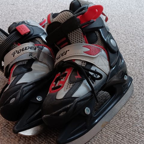 Børne skøjter, som fremstår næsten nye, men ikke helt. De er brugt ca 10 gange.
