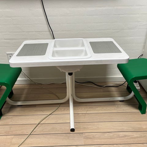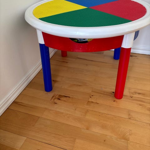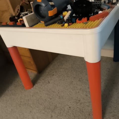 Originalt Lego-bord / Lego bord / Legobord / legebord med “kurv” i stof i midten - perfekt til legeværelset eller børneværelset.