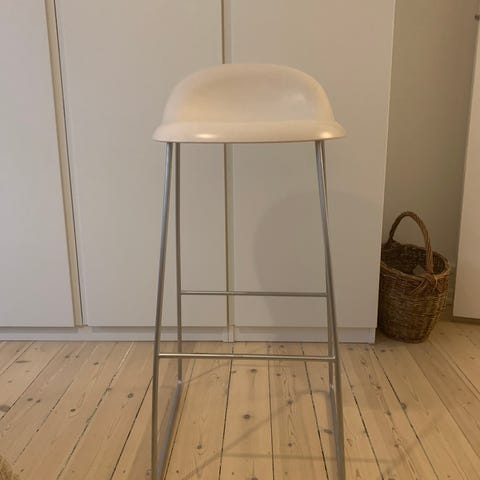 GUBI Bar Stool af Komplot Design blev udviklet tilbage i 2003. Det 3D-formpressede træfinér i sædet var meget nyskabende indenfor møbeldesigns. Barstolen er oplagt til brug i køkkenet, baren eller andre høje borde.