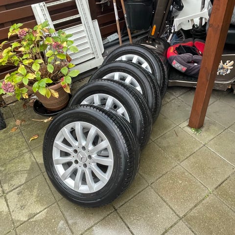 Alufælge, 16", Mercedes, 205 / 60/ R16 med sommerdæk, Bridgstone, fælge med dæk.