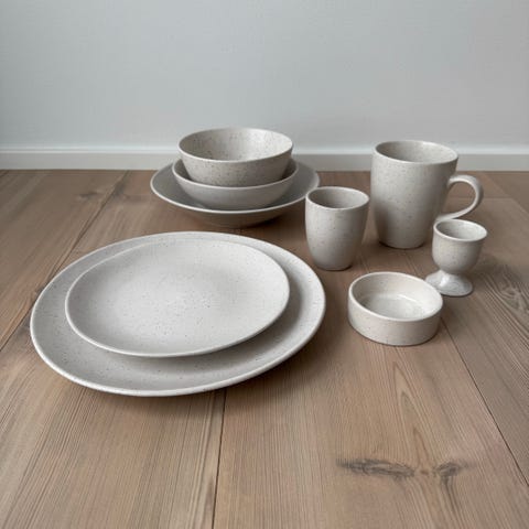 Nordic Sand fra Broste er inspireret af sandets bløde, varme toner og har reaktiv glasur, som giver et levende, håndlavet udtryk med naturlige variationer. Serien passer perfekt til en rolig, skandinavisk borddækning.